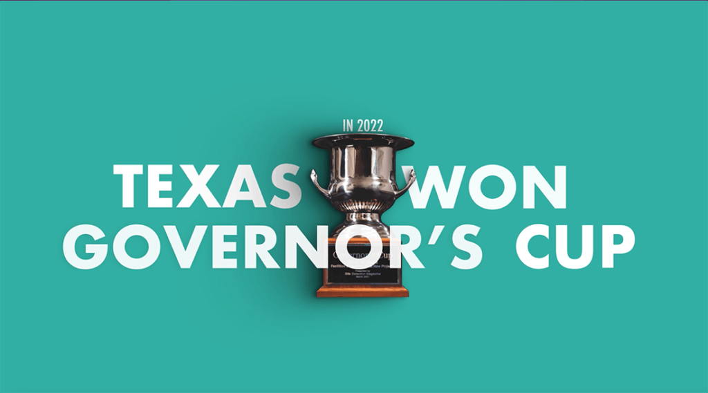April 7, 2022 Texas reigns as the best state for business with 10th Governor’s Cup win Search SearchSearch Most Recent Videos The Future is TexasTexas Wins 11th Governor’s Cup in a RowTexas reigns as the best state for business with 10th Governor’s Cup winTexas No. 1 in trade, FDIGlobal Markets
